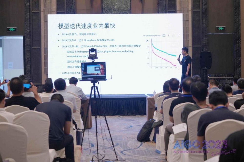 AIGC在一些领域的工业应用方面已取得了斐然的成绩,但未来的产业应用仍然存在广阔的空间,关于AIGC的产业应用,阿里巴巴达摩院XR实验室(X Lab)负责人薄列峰博士、亿欧公司董事、上海公司总经理缪国成先生,优链时代创始人及CEO蒋亚洪博士,慎思学社创始人及首席研究员陆树燊、泰坦数科创始人兼CEO韩一分别就数字人与3D内容生成、AIGC的前景与挑战、AI场景价值的投资密码、真人3D数字分身的创建和应用、AI应用潮以及AI驱动下的产业未来等多个领域议题发表演讲。在同步进行的“AIGC创新应用论坛”中,虎博科技创始人兼 CEO陈烨、微软专家,华为云开发者彭爱华、中科智云高级副总裁李源、金蝶软件 (中国)有限公司解决方案事业部总经理徐昊等12位人工智能领域企业创始人、CEO、负责人针对大模型的研究与发展、AIGC实践应用、AIGC与企业服务、AIGC与未来协作等主题进行深入的行业分享与精彩讨论。