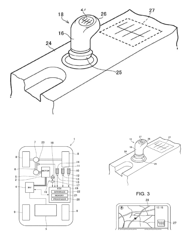 专利描述称,该装置的原理是利用电动机的控制器来模拟不同的虚拟齿轮比,从而使驾驶员产生类似手动变速器的换挡感受。当驾驶员选择最高挡或最低挡时,系统会自动切换到相对应的虚拟齿轮组。例如,若用户选用了“6 挡模式”,且当前挂的是 6 挡,系统便会改变当前可用的传动比,提示用户升至更高挡位或降至更低挡位。