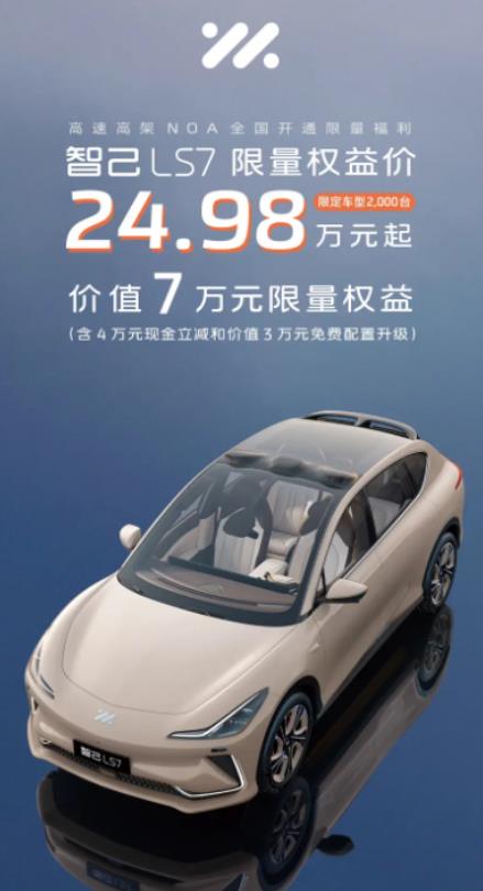 驱动中国2023年12月25日消息,智己汽车为庆祝高速高架NOA全国开通,特别推出限时优惠活动。从即日起至2024年1月31日,下定智己LS7即可享受4万元现金立减以及价值3万元的免费配置升级。此次活动限定车型2000台,限时权益价格仅需24.98万起。