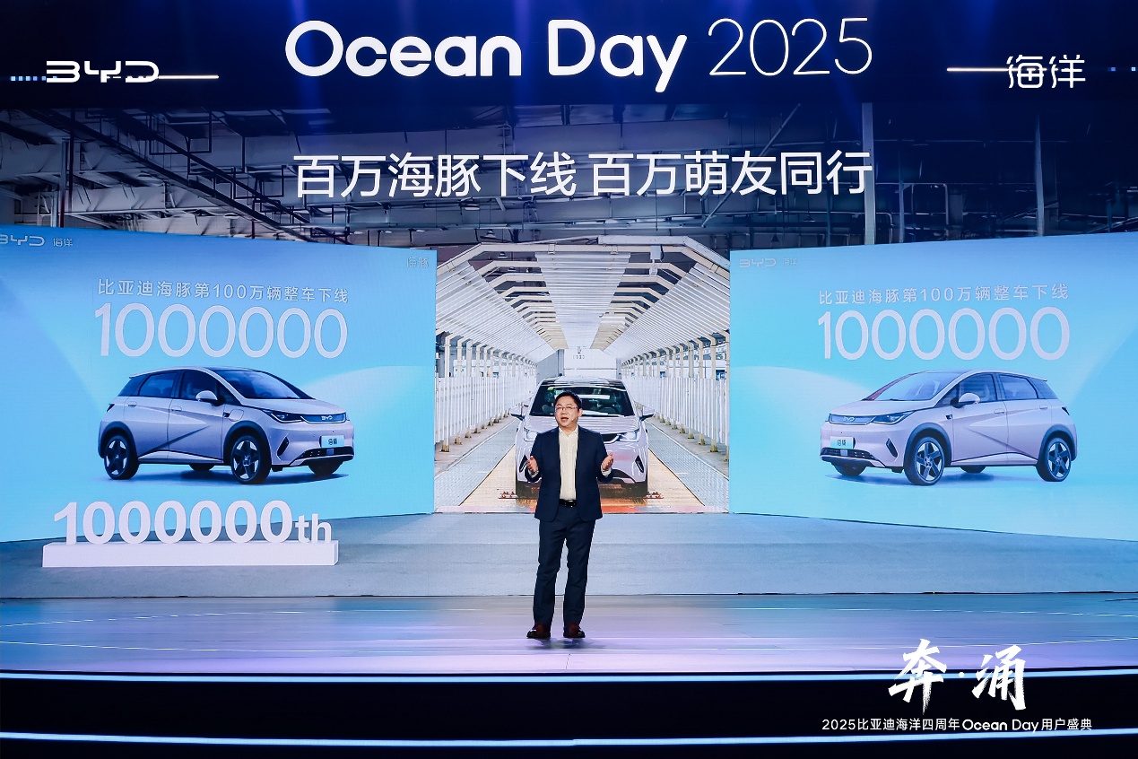 此次盛典的另一大亮点是“纯电新物种”海豚的里程碑成就。作为海洋网的明星车型,海豚上市仅四年便达成百万销量,成为海洋网继宋PLUS、海鸥之后第三款跻身“百万俱乐部”的爆款IP,同时也是同级市场中最快突破百万销量的A0级轿车。