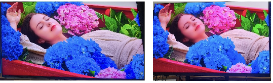 相比之下,SQD-Mini LED只是提高了基础色域,只控光不控色,主打高亮度,但亮度不稳定,在HDR模式下亮度会突降,亮度稳定性不足,所以影音发烧友一定要慎入避雷!在色彩上,SQD-Mini LED因无法独立控色,人物肤色易串色发红,花朵的复杂颜色分离度差,糊成一团缺乏层次感。