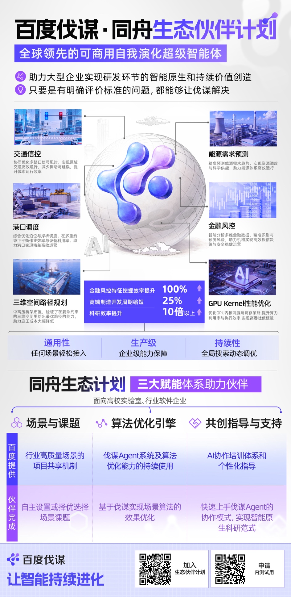 为了进一步加速AI在千行百业的渗透,让顶尖算法工程师将成为企业和科研标配,百度伐谋正式发布“同舟生态伙伴计划”,面向高校实验室、行业软件企业,开放高质量行业场景与课题,共享伐谋Agent系统及算法优化引擎,并提供AI协作培训与个性化服务指导。对于高质量伙伴的科研创新或产业实践项目,百度伐谋将提供全面免费支持。
