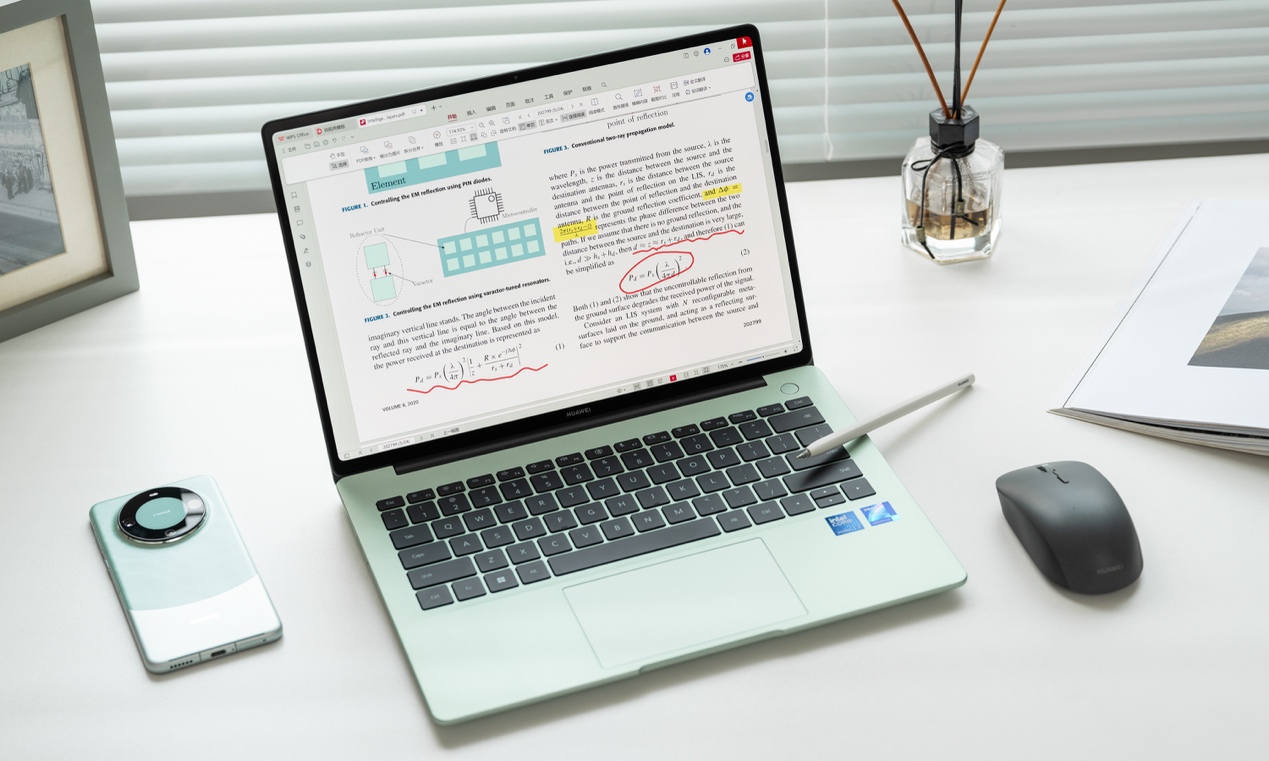 华为MateBook 14配备的14.2英寸2.8K OLED触控屏,屏占比达到91%,支持高精度十点触控。在制作年终汇报PPT时,你可以直接在屏幕上标注重点、调整布局;批注论文初稿时,配合手写笔,可以像在纸上一样自然地做笔记、画重点。
