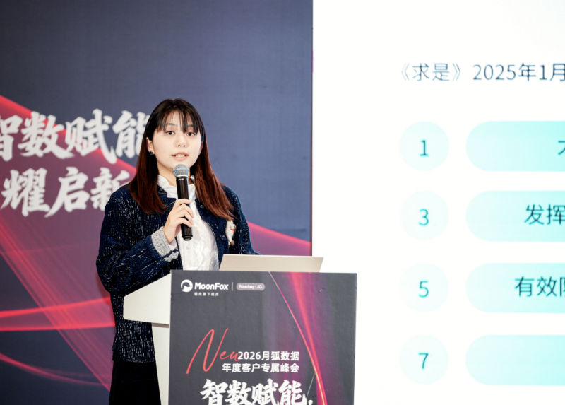 在干货分享环节,月狐数据高级分析师何少佳带来了主题为《2025 年度盘点及未来发展预测分享》的演讲。她通过详实的数据分析,深度剖析了过去一年移动互联网在 AI 浪潮下的结构性变化,并对 2026 年的用户增长趋势、消费行为变迁及技术落地场景进行了前瞻性研判,赢得了现场嘉宾的高度评价。
