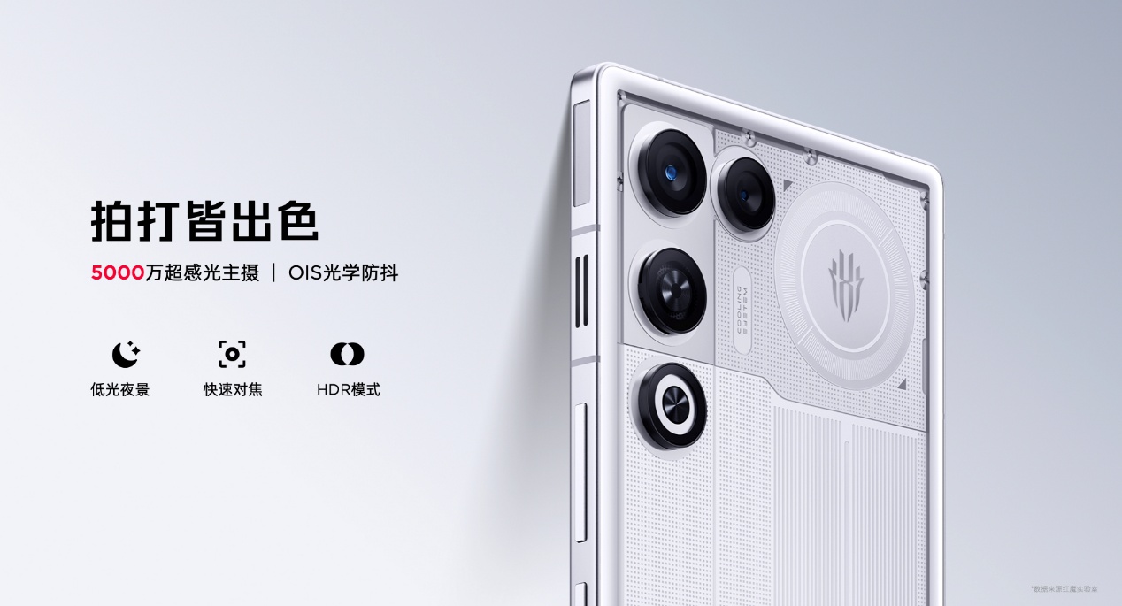 红魔11 Air虽主打电竞体验,但也兼顾日常拍摄需求。影像方面,红魔11Air搭载后置5000万像素OIS超感光主摄+800万像素超广角镜头的双摄组合,配合多种拍摄模式优化,可满足用户日常多场景的拍摄需求。