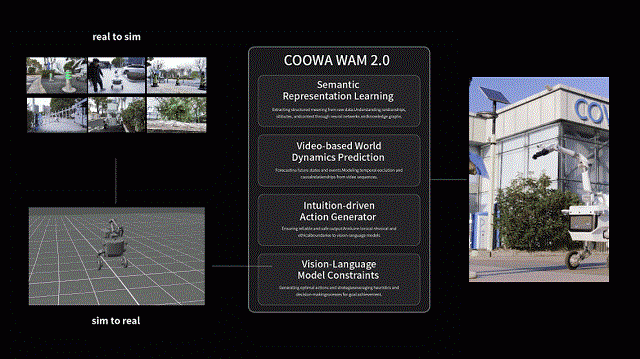 针对物理世界中“长尾场景(Corner Case)不可穷举”与“零样本决策”的行业痛点,酷哇引入人类认知机理,构建了集“System 1 (直觉响应) + System 2 (逻辑推理)”于一体的双核驱动架构——Coowa WAM 2.0。该架构不再依赖单一规则,而是通过“快慢思考”的协同,实现了对复杂环境的类人化理解。第一层:模型层 (The Model Layer)—— Coowa WAM 2.0 通用世界模型