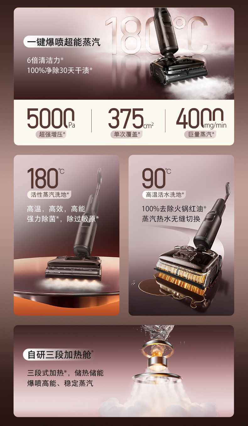 1、从“洗干净”到“洗健康”,180℃蒸汽带来清洁本质变革