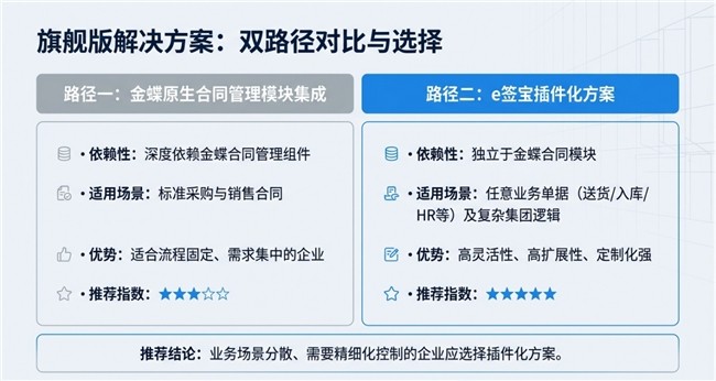综合以上分析,我们明确推荐所有金蝶星空用户选择e签宝插件化集成方案,无论您使用的是企业版还是旗舰版。