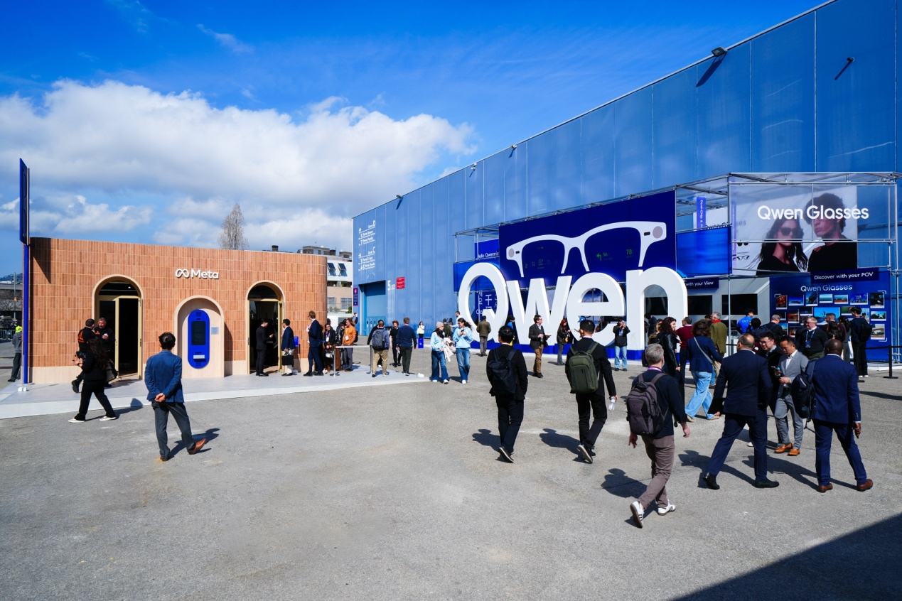 千问AI眼镜不仅拿下比Meta更大的展位,更竖起高达5米的“Qwen”巨幅标识。