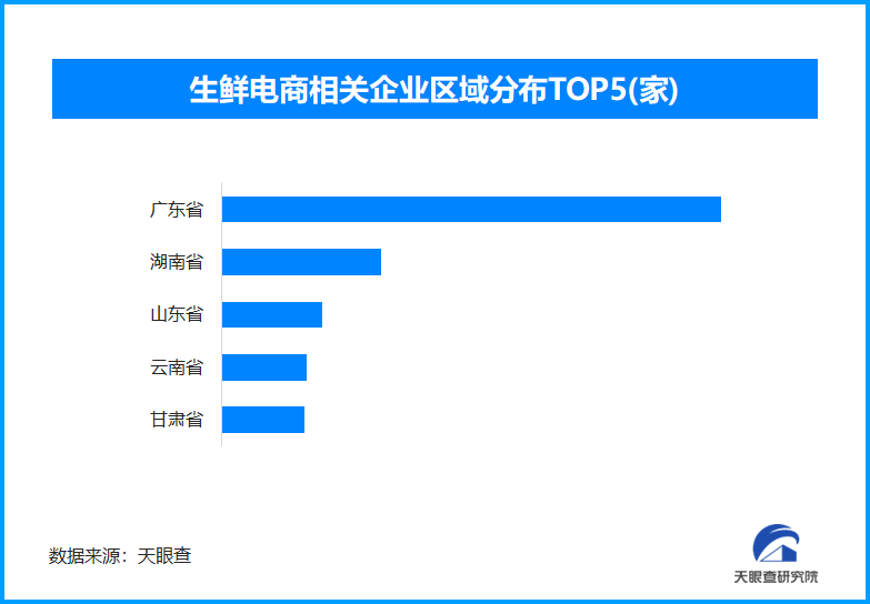 天眼查专业版数据显示,截至目前我国现存在业、存续状态的生鲜电商相关企业超6.3万家。从区域分布来看,广东省生鲜电商相关企业数量位居首位,以超1.7万余家的相关企业数量,占全国相关总数的26.77%。排在其后的是湖南省和山东省。