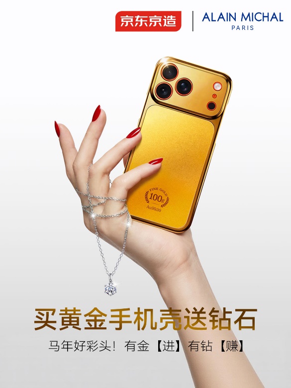 京东京造近日联合法国轻奢珠宝品牌艾兰米雪(Alain Michal)上线特别活动:买京东京造黄金手机壳送AM钻石。精准回应当下消费者“既要理性投资,又要情绪价值”的双重需求。