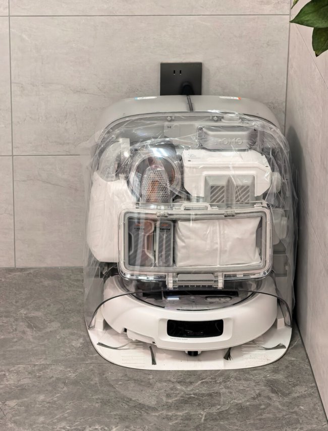 续航与维护配置: 搭载 3200mAh 电池,静音档下单次续航可达 150 分钟 。基站占地面积仅相当于一盆立式盆栽,但集成了 45℃ 热风烘干、自动集尘与洗拖布功能 。水箱部分采用了可视化的清污水箱二合一设计,日常换水逻辑更简化 。