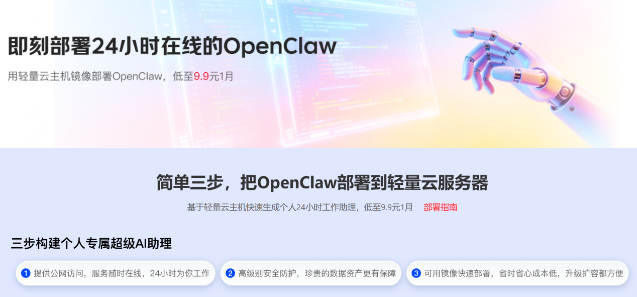 即日起,用户登录京东云官网9.9元即可购买京东云主机,一键部署OpenClaw,现在下单更有百万Tokens免费用。用24小时专属工作助理,拥抱AI Agent的无限可能。