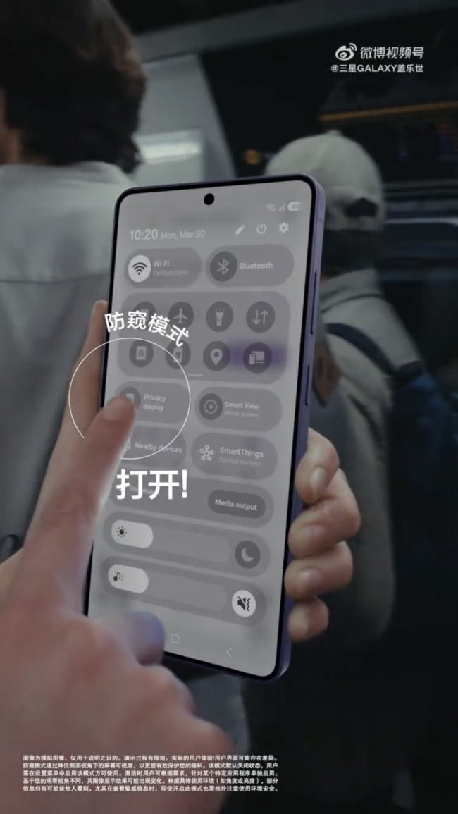 早高峰地铁里,Galaxy S26 Ultra的内置防窥屏不仅能一键开启,还能根据使用场景自定义防窥显示屏的防窥模式——当你打开银行App、进入支付界面,或在锁屏界面输入密码时,或打开指定应用时自动开启,并可灵活调整隐私等级,做到正面清晰,侧面隐身。更贴心的是,它还能实现“局部防窥”:来消息时只有通知弹窗区域被保护,屏幕其他区域依然正常显示,既守护隐私又不影响使用。你可以设置成相册App自动开启防窥,让别人偷瞟不了你的照片;也可以让它在连接公司Wi-Fi时自动激活,成为职场人的隐形shield。