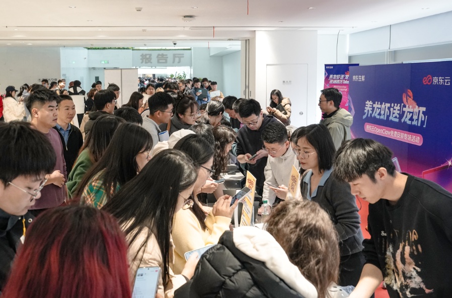3月13日中午,京东云在京东集团北京总部现场免费安装OpenClaw,发起“养数字龙虾,送实物龙虾”活动,用户完成OpenClaw安装部署并完成一次任务执行,现场送出京东生鲜的美味小龙虾。活动吸引了众多开发者、AI爱好者驻足参与。参与人群从体验区一直排队到走廊,共同体验这款热门开源AI智能体的云端便捷部署方案。