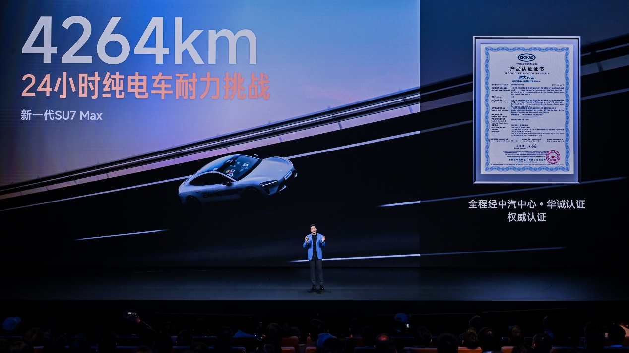 小米汽车还率先参与了由奔驰和保时捷发起的纯电车“24小时耐力测试”:2025年4月小米YU7 Max测试车以3944km的成绩成为纯电SUV记录保持者,新一代SU7 Max测试车以4264km的成绩成功刷新纯电量产车记录。
