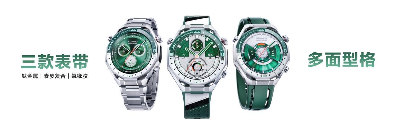 不止专业性能在线,华为WATCH Ultimate 2 非凡探索 旷野绿,还兼备契合高尔夫玩家身份的高端质感,既好用又能彰显品味。它的表圈采用双色纳米微晶陶瓷,表身辅以非晶锆合金与蓝宝石玻璃表镜,兼顾美学与耐用性。表带采用素皮复合+氟胶双层材质,还附赠多款表带满足个性化需求。此外还新增拓域致境表盘、元域之芯表盘、雅致运动表盘、拓界者表盘4款以绿色为主题的丰富表盘,适配百变场景。可以说,以全方位的产品实力重新定义高端智能高尔夫手表的品类标准。