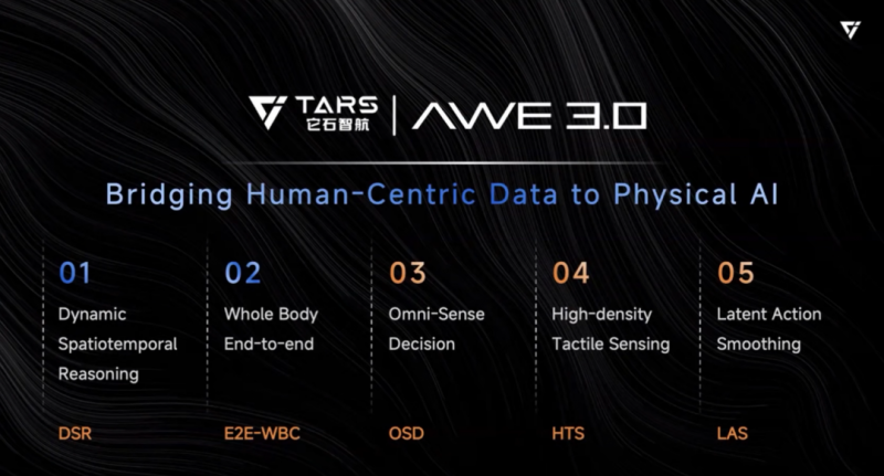从技术突破来看,AWE 3.0在延续全身端到端学习、动态时空推理等既有优势基础上,实现了三项关键性的技术创新:全视角通感决策(OSD)、高密度触觉感知(HTS)、隐空间丝滑动作(LAS),每一项都直击当前具身智能发展的核心痛点。
