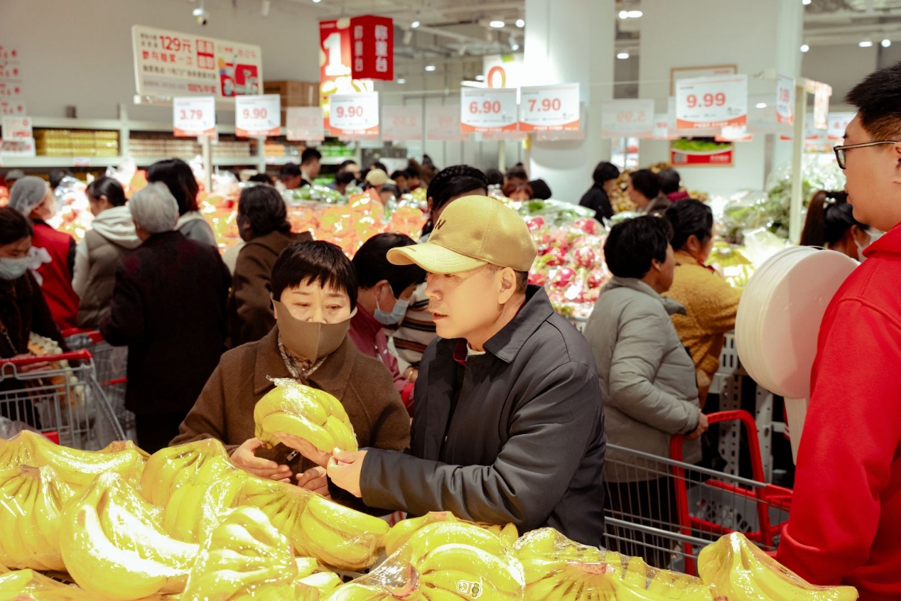 开业尚未到营业时间,门店入口处已排起长队,不少市民早早等候,只为抢先体验高性价比好物。上午9点正式开门后,客流高峰持续不断,店内人头攒动、选购火热,热闹的购物氛围席卷整个商场。“正好想囤点肉和蔬菜,京东折扣超市的价格太便宜了,还能买到应季的绿植,一趟就能买齐!”正在挑选富贵竹的市民刘女士说道,她的购物车里早已装满了猪肉、水果、自有品牌零食等商品,难掩收获的喜悦。