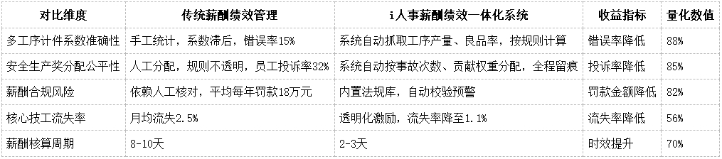 安全生产奖分配公平性提升85%,激励精准触达,核心技工流失率降低56%。