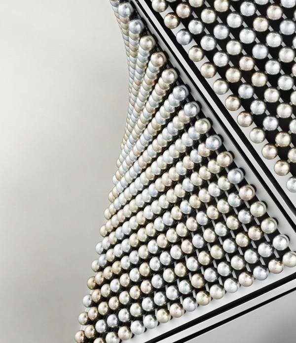 珍珠构造:6块面板各镶嵌 289 颗阳极氧化工艺铝制圆球,共7种以珍珠为灵感的定制色调,表面随光线与环境变化,呈现闪烁灵动的光泽。