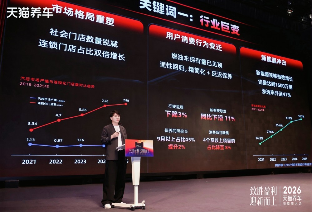 这里是2026天猫养车加盟商大会的现场。会场中央,天猫养车CEO无封,这位在阿里沉淀十年的“老兵”,刚刚结束了他的分享。他没有像往年那样堆砌满屏的PPT数据,而是讲起了F1赛车的维修区4秒换胎的故事,讲起了跑过的40多座城市、200多家门店,以及一个核心观点: