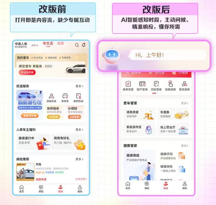 对于普通用户而言,改版后的服务页操作更便捷、功能更实用,无论是车险用户、健康险用户,还是老年用户、新手用户,都能快速找到自己需要的服务,大幅提升了使用体验;对于中国人保而言,本次服务页改版不仅优化了用户粘性,也进一步强化了其数字化服务优势,为行业同类APP的服务升级提供了参考。