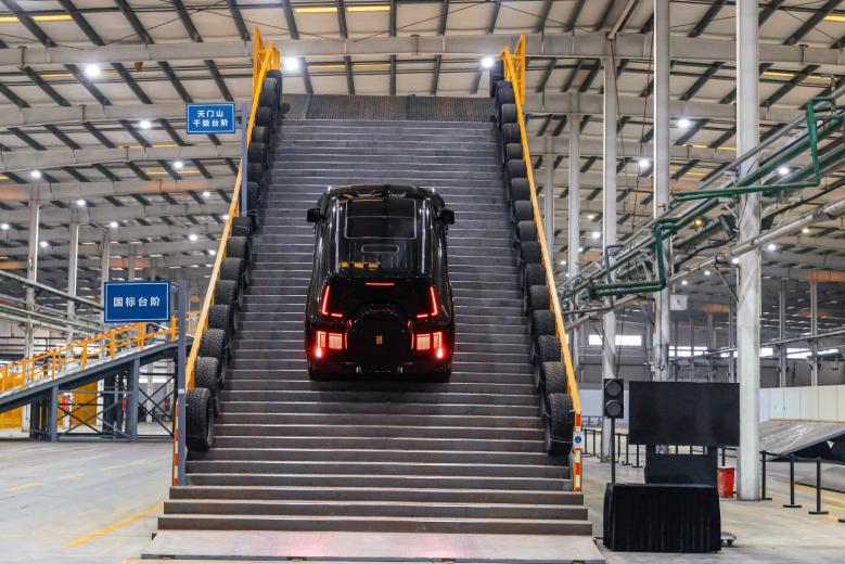比亚迪综合越野开发中心已开发30多套专用测试工装,包含天门山天梯、可变附着力坡道、轮定力学测试平台等多重越野测试工装。通过全面、准确的场景复刻,满足了电驱越野对重复验证、完整数据和持续升级等的需求,打破了传统户外测试的局限,填补了国内电驱越野体系化研发测试的空白。