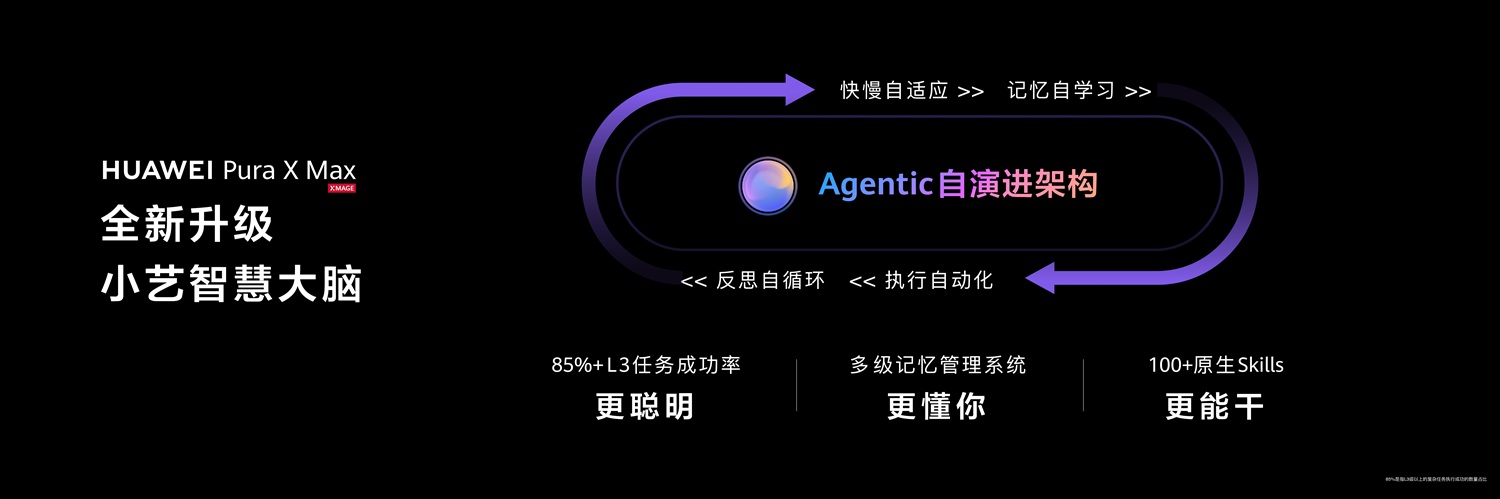 伴随式AI体验跃迁的背后,是小艺Agentic 自演进架构的底层重构、全新升级的小艺智慧大脑。小艺智慧大脑支持快慢思考融合、记忆与自主学习、反思与进化等能力于一体,使小艺能够在长期使用中不断优化执行策略,越用越聪明,越用越贴心。