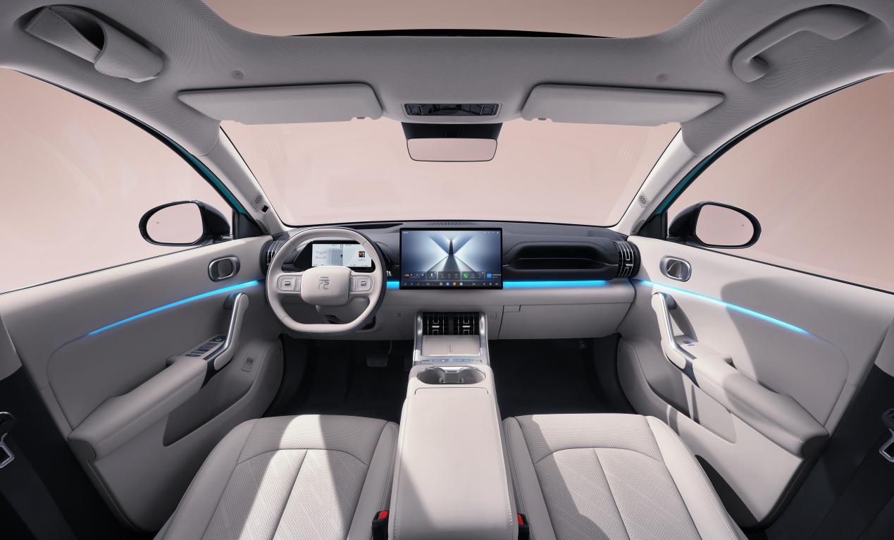 整套座舱以圆润线条、流畅曲面与自然生态为设计核心。层叠悬浮式立体曲面中控台,层次柔和,氛围感拉满;全新两幅式多功能方向盘,极简造型干净利落,操作顺手;搭配豪华集成式电子怀挡,精简空间布局,兼顾实用便捷与精致质感,坐进车内,松弛自在。