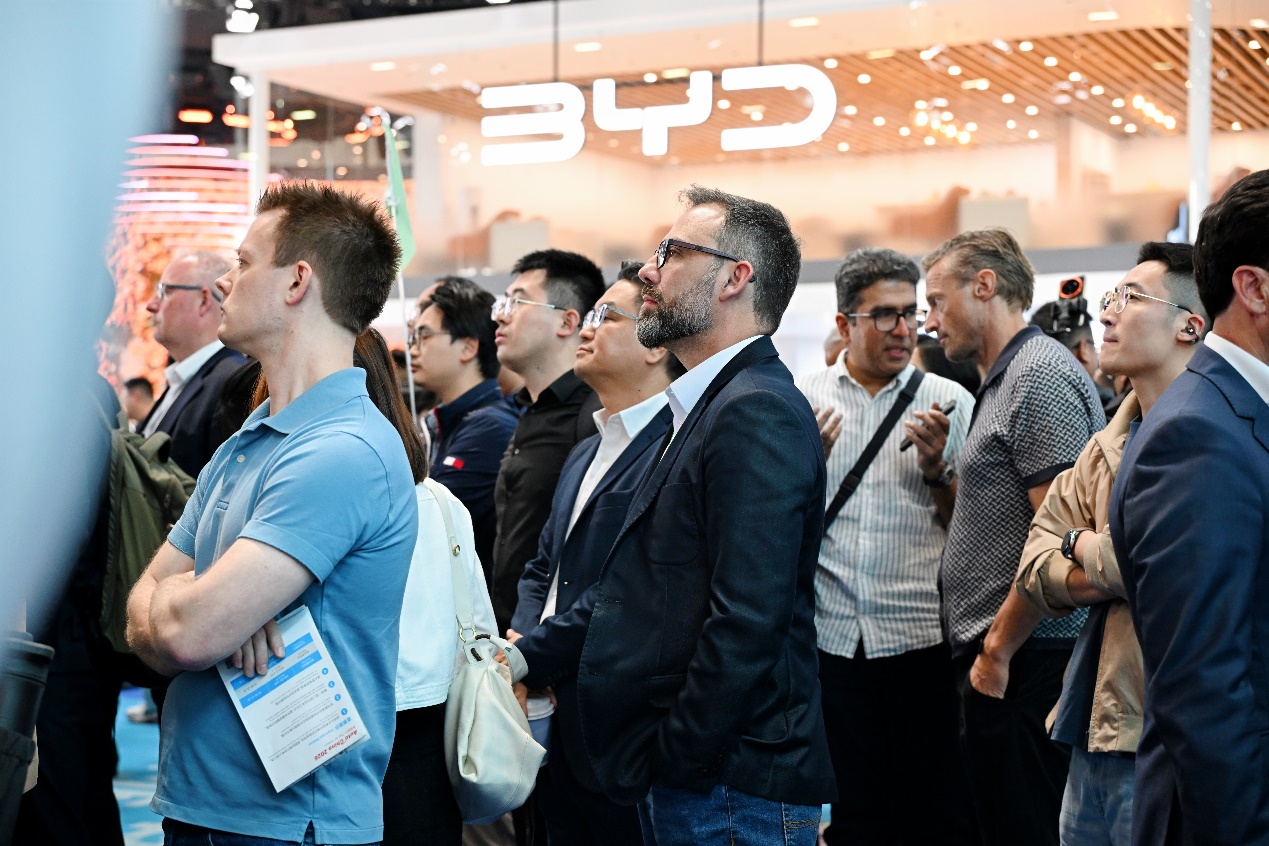 而比亚迪的两大技术展区更是成为国际友人的关注核心:闪充技术实现5分钟充好、9分钟充饱、零下30℃只多3分钟的行业突破,攻克低温充电难题,颠覆全球新能源补能体验;天神之眼智能辅助驾驶系统,以全域安全架构和全场景智驾能力,展现中国汽车智能科技的优秀水平。现场实测体验区更是人气爆棚,海外参观者亲身感受硬核技术,频频点赞。