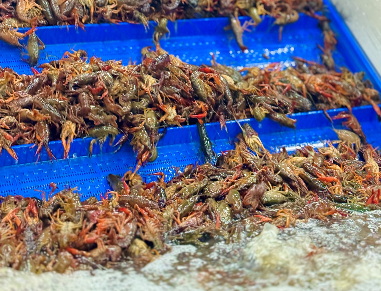 每只小龙虾在入锅前,都要经历四重筛选:自动分级机完成初步分拣后,再叠加人工初选、机选、复选、复核,层层淘汰死虾、空壳虾、软壳虾,确保只有质量达标者进入烹饪线。