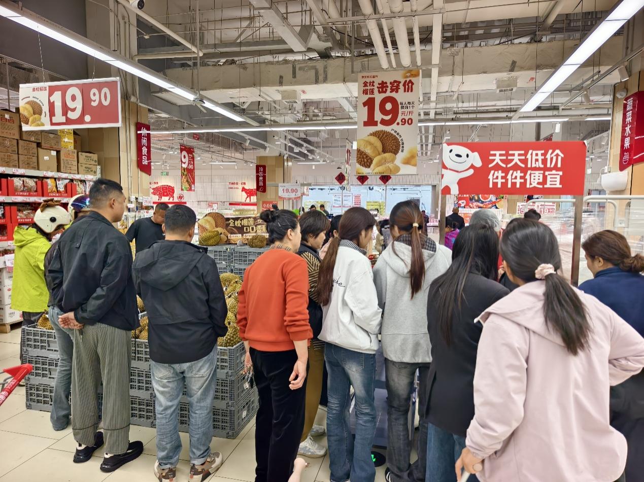 时令生鲜板块,进口金枕榴莲以19.9元/斤的击穿价正式开售,大幅低于当前市场每斤二三十元的均价,让消费者轻松实现“榴莲自由”。与此同时,5月1日-5日,京东折扣超市北京、河北、安徽区域将开启满额抽奖活动,单笔消费满149元即可参与抽奖,最高可抽取500元超市提货卡,解锁假日消费惊喜。